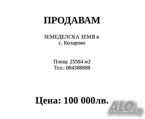 I am selling a yard in regulation with a municipality, area 3 decares in Dulovo